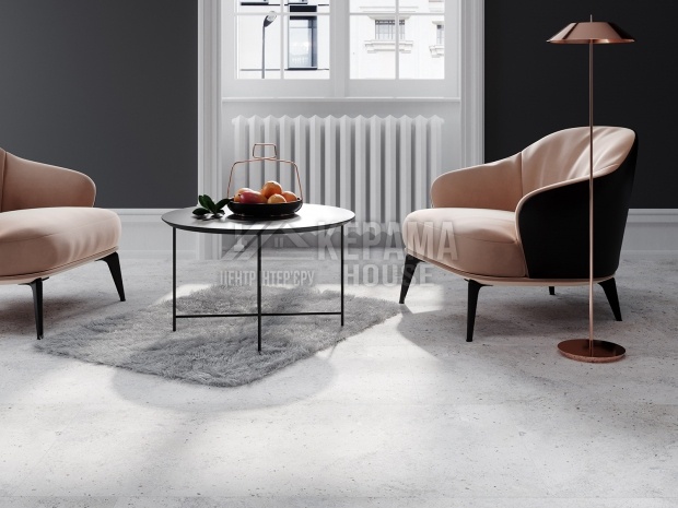 CORSO - керамічна плитка розміром 600х600мм з ефектом бетону, сірого кольору. Вона ідеально підходить для створення сучасних інтер'єрів в стилі індустріального мінімалізму, може використовуватися на підлозі, стінах або як декоративний елемент.