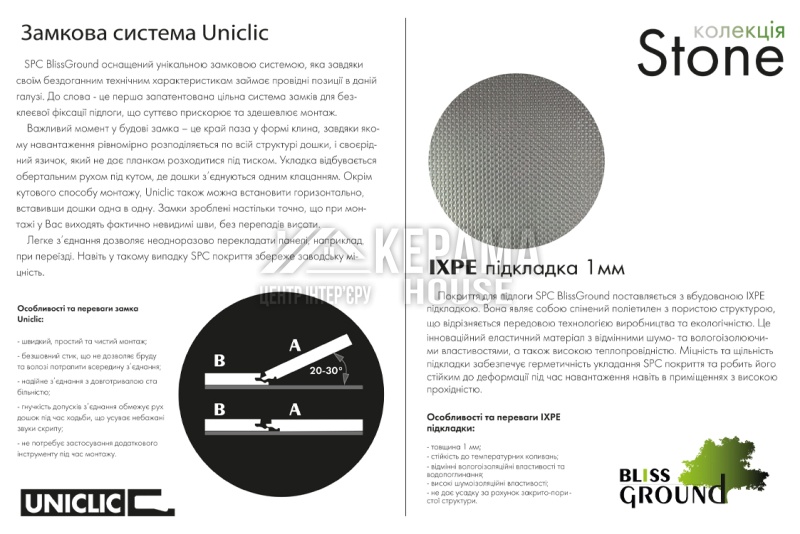 Вінілова підлога SPC Stone Concrete light 91.5×46.5х0.6 см (5+1мм) BlissGround