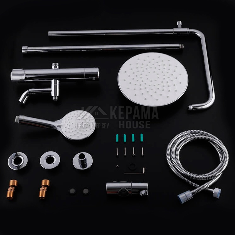 Корпус системи G2490 виготовлений з латуні, що забезпечує захист від корозії та подовжує термін експлуатації. В комплекті є шланг, режимний душ та тримач з регулюванням. Вся душова конструкція монтується настінним способом за допомогою кріплень та ексцентриків. Так як вона має компактні розміри, то її можна розмістити в душовій чи ванній кімнаті з обмеженим простором.