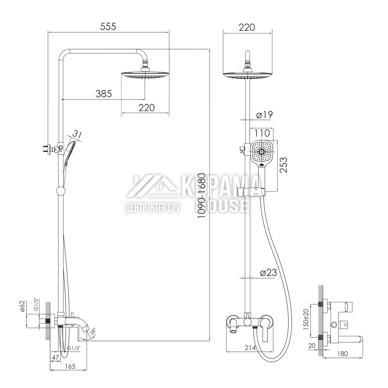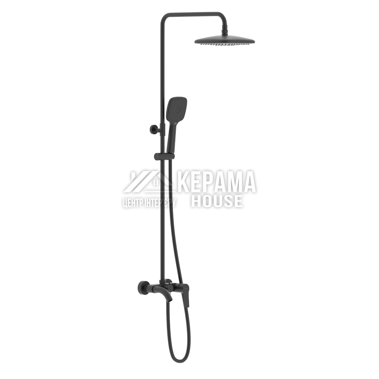 KUCERA система душова (змішувач для ванни, душ 220*220 мм ABS, лійка 3 режими, шланг 1700 мм PVC), чорний матовий