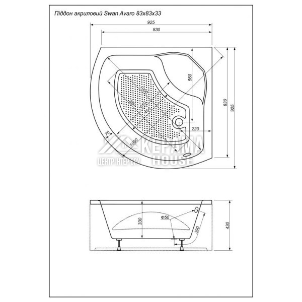 Піддон глибокий кутовий Swan Avaro 83х83 ноги та передня панель