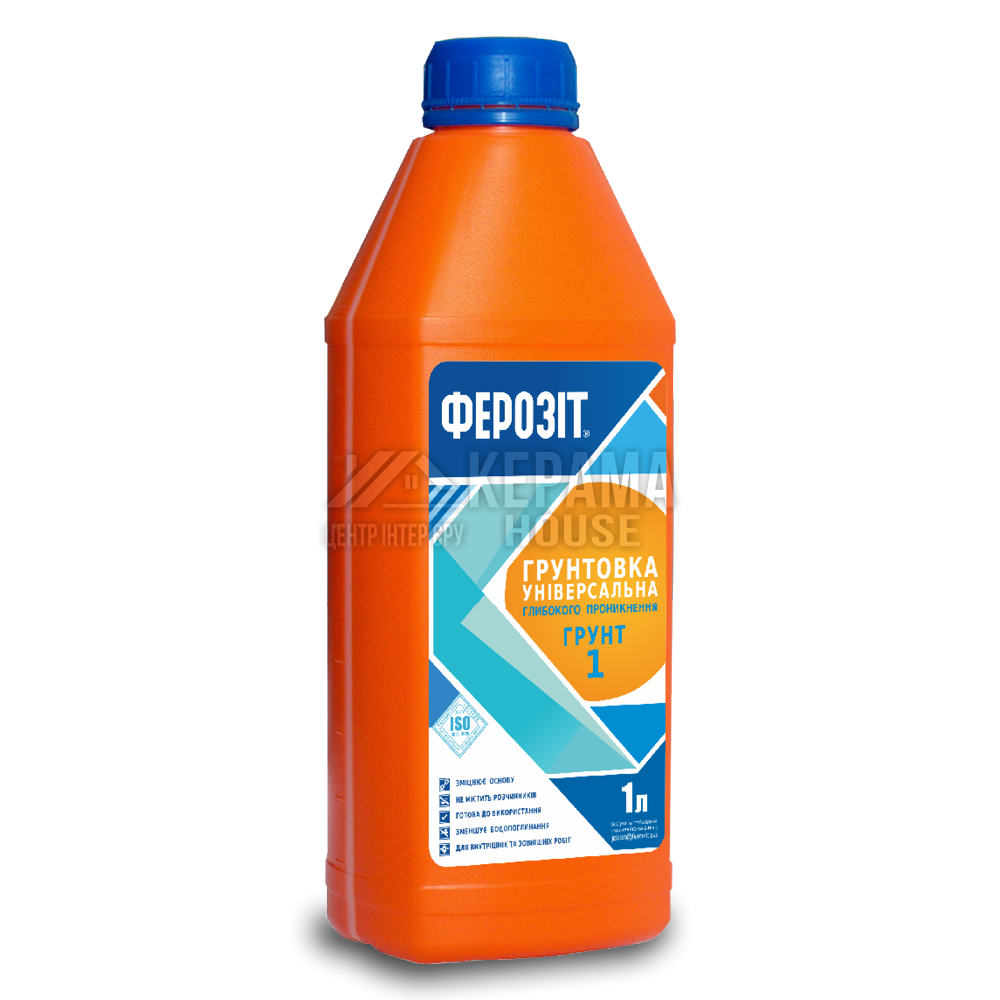Ферозіт Грунт 1 — універсальна грунтовка глибокого проникнення на основі акрилової дисперсії з ультрадрібними частинками, призначена для зміцнення слабких та поглинаючих поверхонь (штукатурки, бетони, цегла, гіпсокартон) та покращення адгезії матеріалів до основи. Для внутрішніх та зовнішніх робіт.