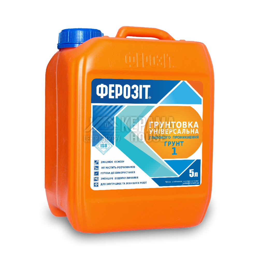 Ферозіт Грунт 1 — універсальна грунтовка глибокого проникнення на основі акрилової дисперсії з ультрадрібними частинками, призначена для зміцнення слабких та поглинаючих поверхонь (штукатурки, бетони, цегла, гіпсокартон) та покращення адгезії матеріалів до основи. Для внутрішніх та зовнішніх робіт.