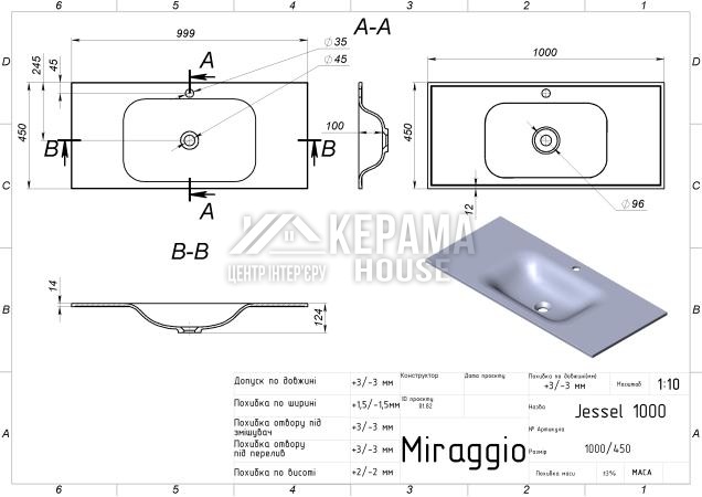 Завдяки своєму високоякісному матеріалу та ретельній обробці, умивальник Jessel 1000 є надійним та довговічним. Ви можете бути впевнені, що він прослужить вам протягом багатьох років без пошкоджень та зносу.