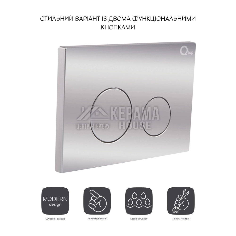 Панель змиву для унітаза Qtap Nest QT0111M11112CRM - це сучасне рішення при оснащенні ванної кімнати. Особливістю панелі є двоклавішний блок змиву, який дуже економічний в плані витрати води. Панель змиву з хромованою поверхнею гармонійно поєднується з меблями ванної кімнати і облицювальною плиткою. Передбачає можливість монтажу з горизонтальним розташуванням.
