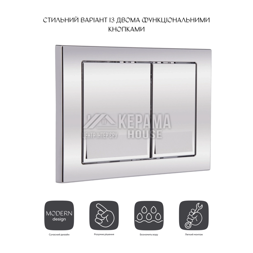 Панель змиву для унітаза Qtap Nest QT0111M06028CRM - це сучасне рішення при оснащенні ванної кімнати. Особливістю панелі є двоклавішний блок змиву, який дуже економічний в плані витрати води. Панель змиву з хромованою поверхнею гармонійно поєднується з меблями ванної кімнати і облицювальною плиткою. Передбачає можливість монтажу з горизонтальним розташуванням.