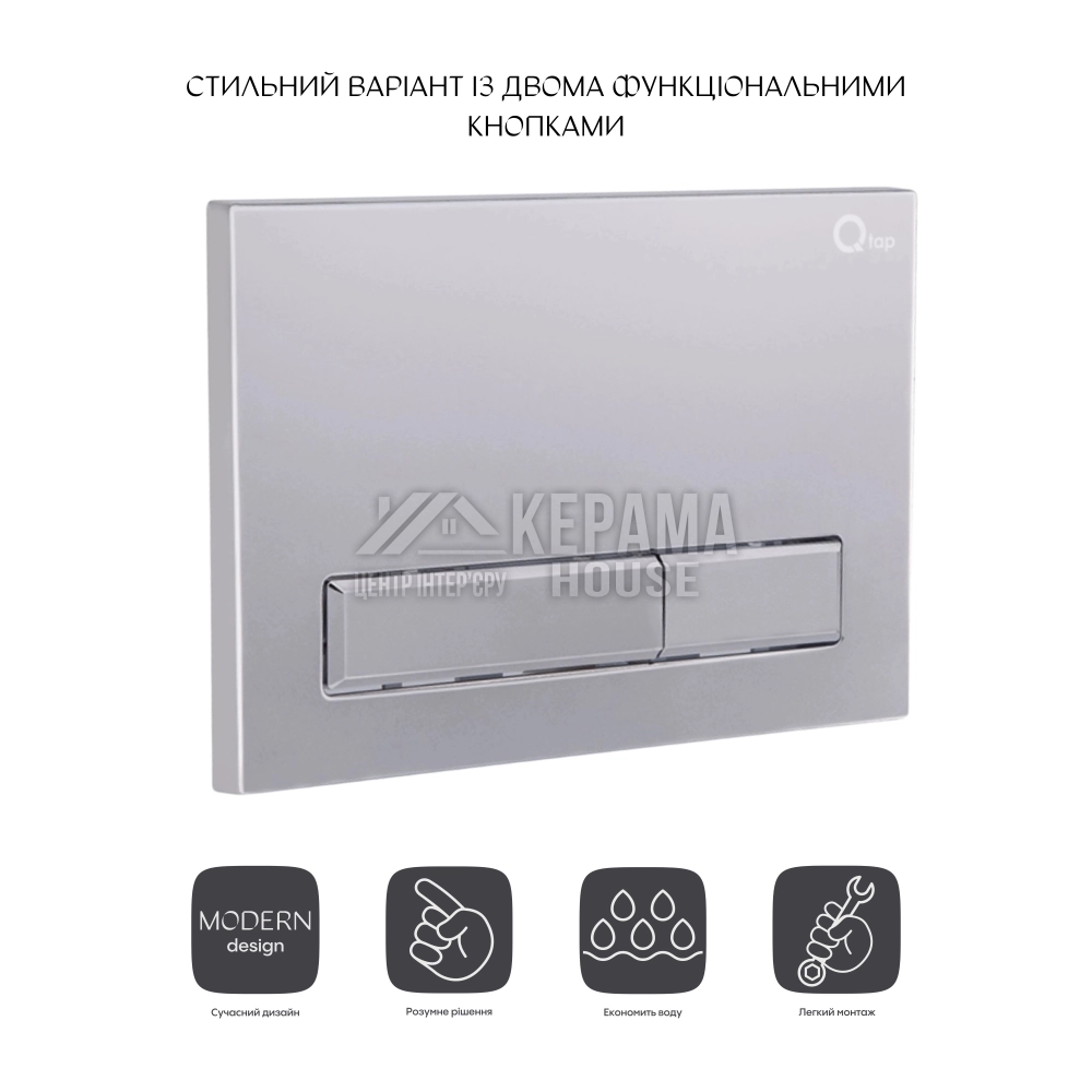 Панель змиву для унітаза Qtap Nest QT0111M08382SAT - це сучасне рішення при оснащенні ванної кімнати. Особливістю панелі є двоклавішний блок змиву, який дуже економічний в плані витрати води. Панель змиву з поверхнею сатин гармонійно поєднується з меблями ванної кімнати і облицювальною плиткою. Передбачає можливість монтажу з горизонтальним розташуванням.