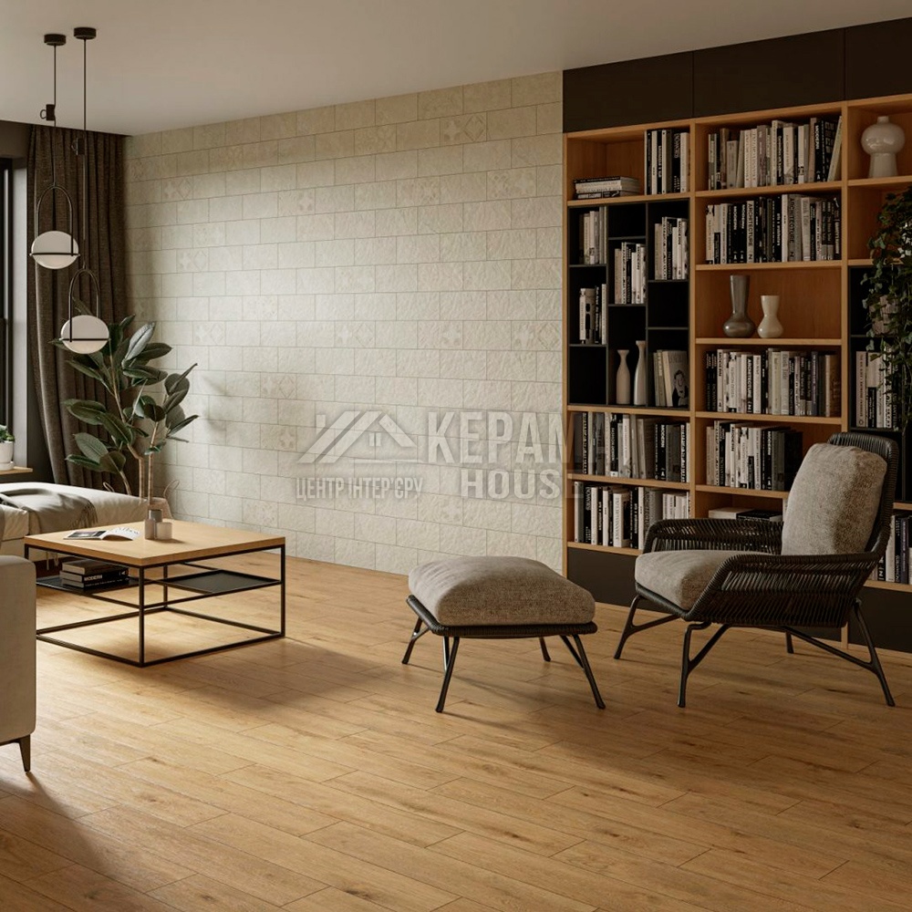 LISTRIA SABBIA - яскрава і приваблива плиточка, прекрасно підходить для створення м'якого дерев'яного стилю у вашій оселі. Завдяки заспокійливим і спокійним тонам ця плитка створює ефект натуральної деревини та ідеально підходить для мінімалістичного стилю інтер'єру. Формат плитки 175x800 робить її ідеальною для відкритих приміщень, а в поєднанні з іншими світлими тонами вона створює ефект великого простору.