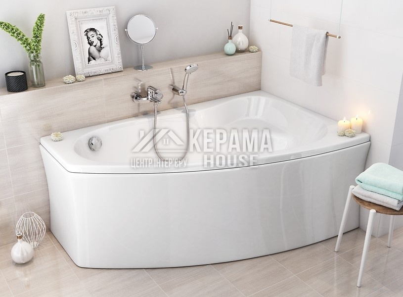 Асиметрична ванна Sicilia 170 призначена для маленьких ванних кімнат. Ця ванна має бічний злив на короткій стороні та зручне сидіння. Ця ванна доступна з регульованими ніжками. Відповідні панелі можна придбати окремо.
