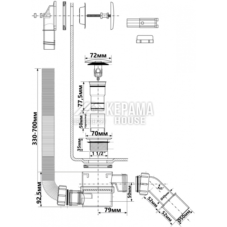 Сифон для ванни, Сифон для піддона