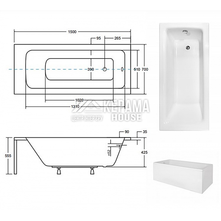 Відмінні технічні характеристики забезпечують безпеку та комфорт під час користування ванною Talia 150x70.
