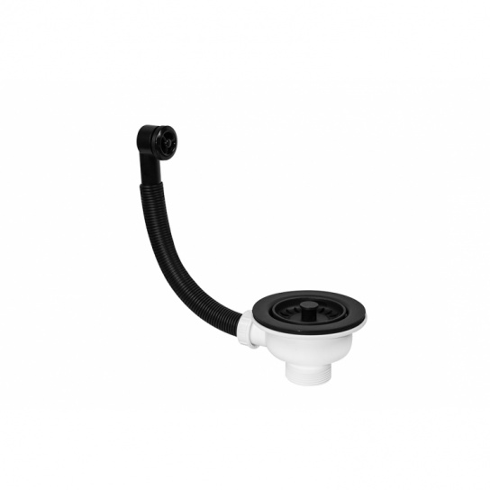 Злив для кухонної мийки 113 мм з круглим переливом, чорний мат FSW50P-POL-25-MB903