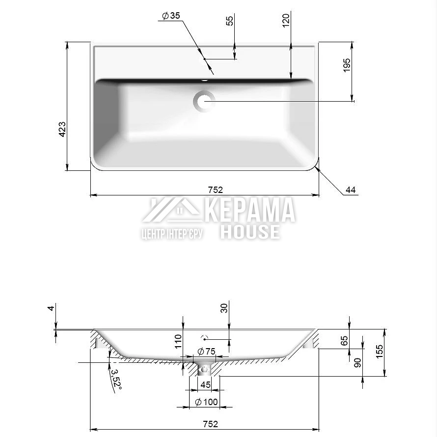 Умивальник Deep 75 см Aqua Rodos