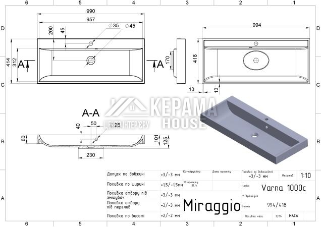 Якісний білий колір умивальника Varna 1000 Mirasoft створює стильний та сучасний вигляд, що додає ванній кімнаті додаткову елегантність.
