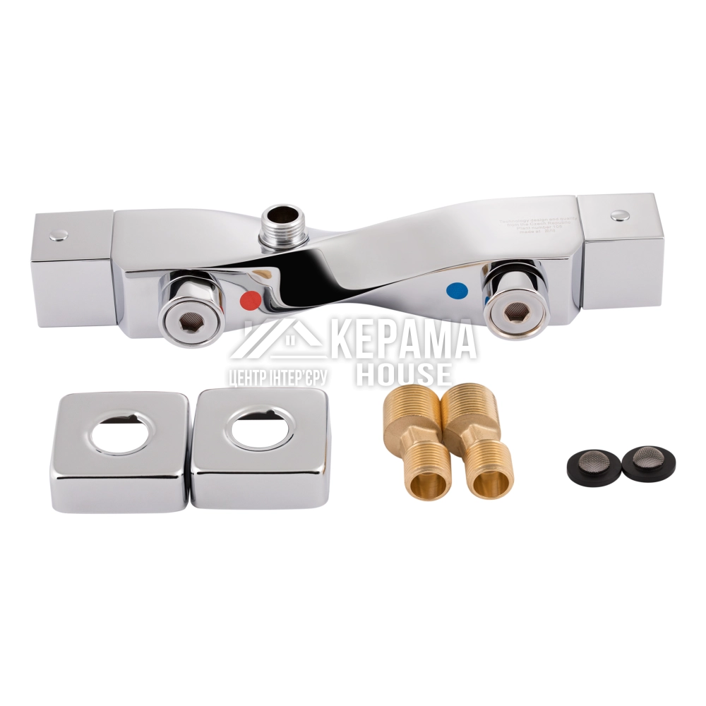 Термостатичний змішувач для душу Zkrouceny 40T105C має хромовану сяючу поверхню, що стійка до утворення корозії, забруднень і стирання. Корпус виготовлено з латуні. Це гарантує тривалий термін експлуатації виробу. Для включення подачі води і регулювання температури змішувач оснащено двома вентилями, які роблять процес налаштування температури і напору води простим і інтуїтивно зрозумілим.