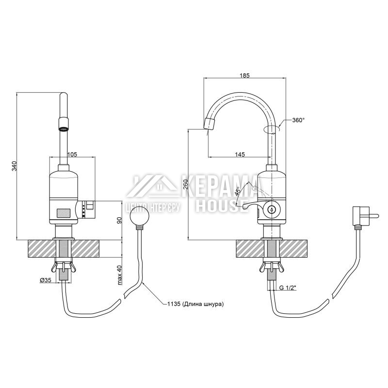 Кран для кухні проточний Lidz (WCR) 95 00 056 виготовлений з нержавіючої сталі. Призначений для швидкого нагріву проточної води для побутових цілей. Підмикається до магістралі холодного водопостачання за допомогою гнучкого шланга діаметром 1/2 "з тиском від 0.04 до 0.5 МПа і побутової електричної мережі 220 В, 50 Гц.