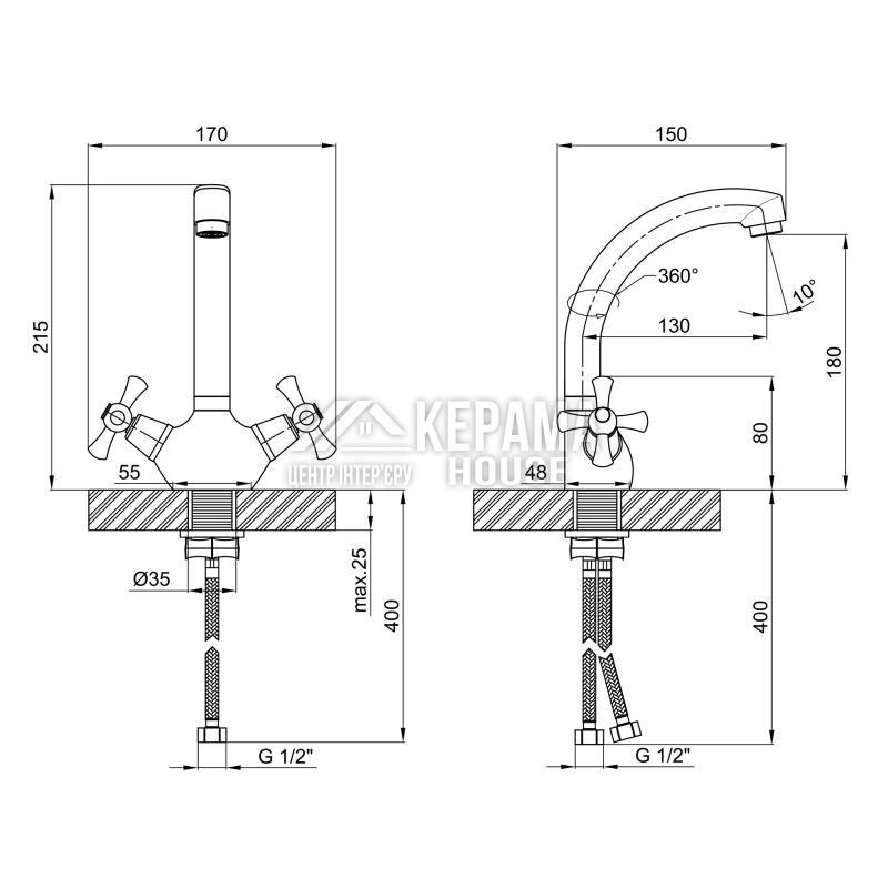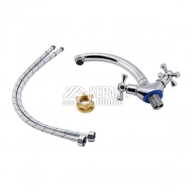 Змішувач для кухні Lidz (CRM) 75 21 271F-2 виготовлений з цинку. Завдяки глянсовому хромованому покриттю має оригінальний зовнішній вигляд. Виконаний в класичному стилі, з вентильними ручками для перемикання потоку холодної та гарячої води.