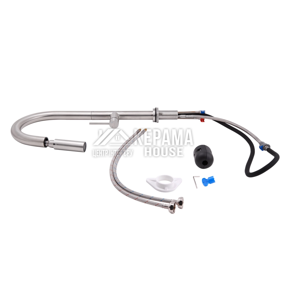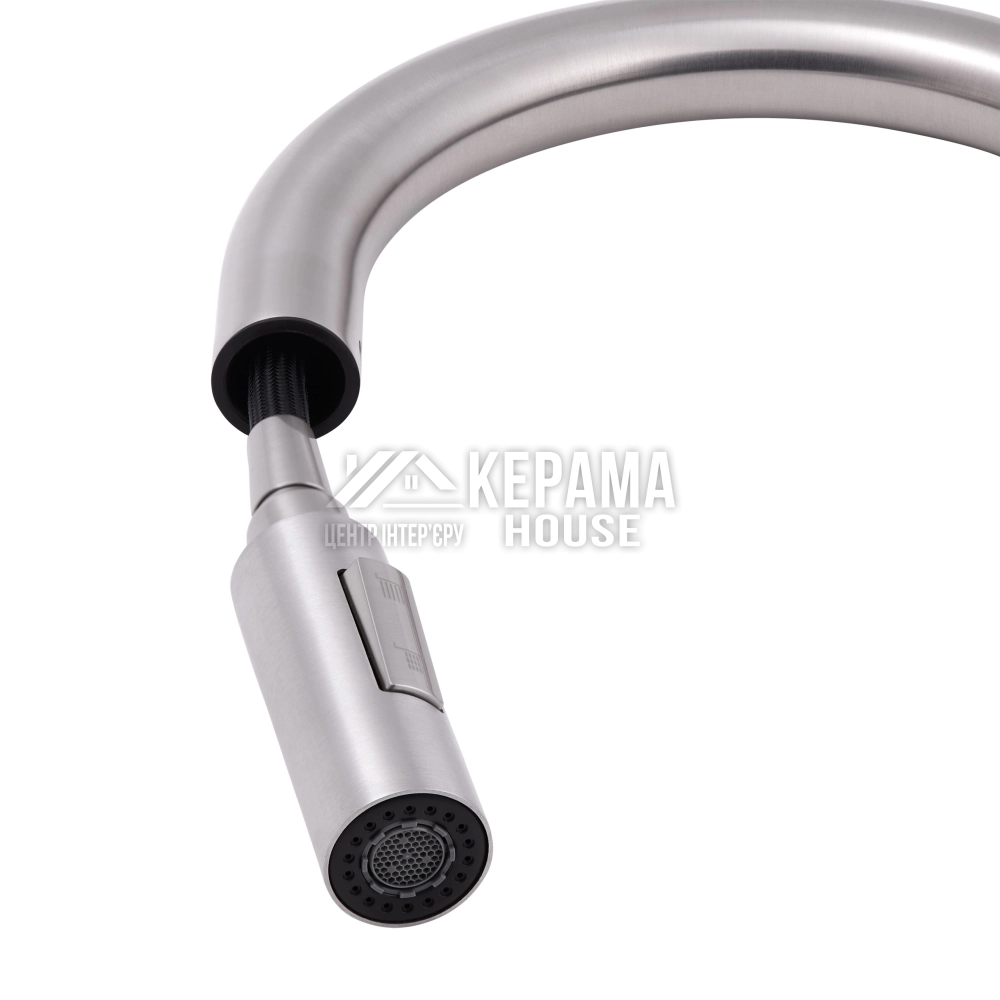 Змішувач для кухні з висувним виливом Qtap Lenicka 9138103UN виготовлено з високоякісної нержавіючої сталі з брашованим нікельованим покриттям, що забезпечує довговічну безперебійну роботу виробу. Завдяки висувній формі виливу і двом режимам подачі струменя, які перемикаються кнопкою на виливі, можна з легкістю очистити важкодоступні місця на посуді. Довжина висувного шланга - 1470 мм. Управління температурою і напором води здійснюється за допомогою зручного важеля.