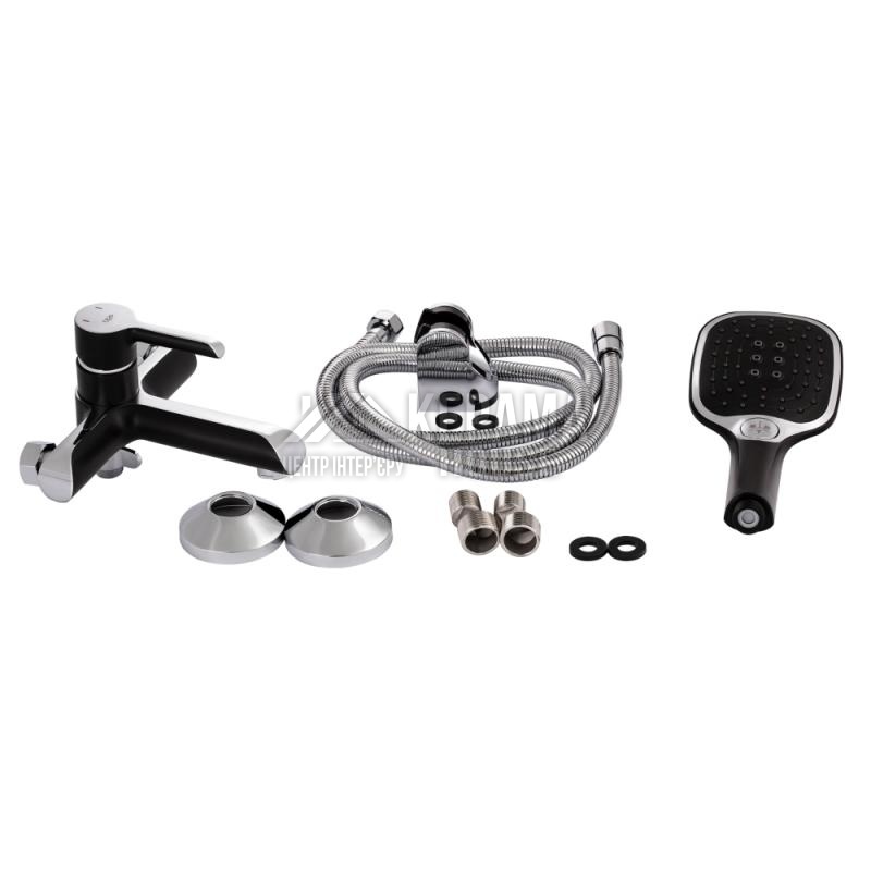 Змішувач, лійка для ручного душу, душовий шланг, кронштейн для ручного душу, кріпильні деталі.